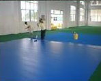 | 劃線:用雙組份硅PU白線漆畫標(biāo)準(zhǔn)球場(chǎng)界線,用美紋膠紙按線緊粘在地面上,防止毛邊,用刷子直接刷涂料。 | ![]() |