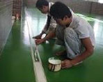 | 水性面層:把硅PU水性面層按比例攪拌后用滾筒滾涂,使得球場(chǎng)表面色彩鮮艷悅目,并且對(duì)氣候和紫外線輻射具有很強(qiáng)的抵抗力,球場(chǎng)面層更美觀耐久; | ![]() |